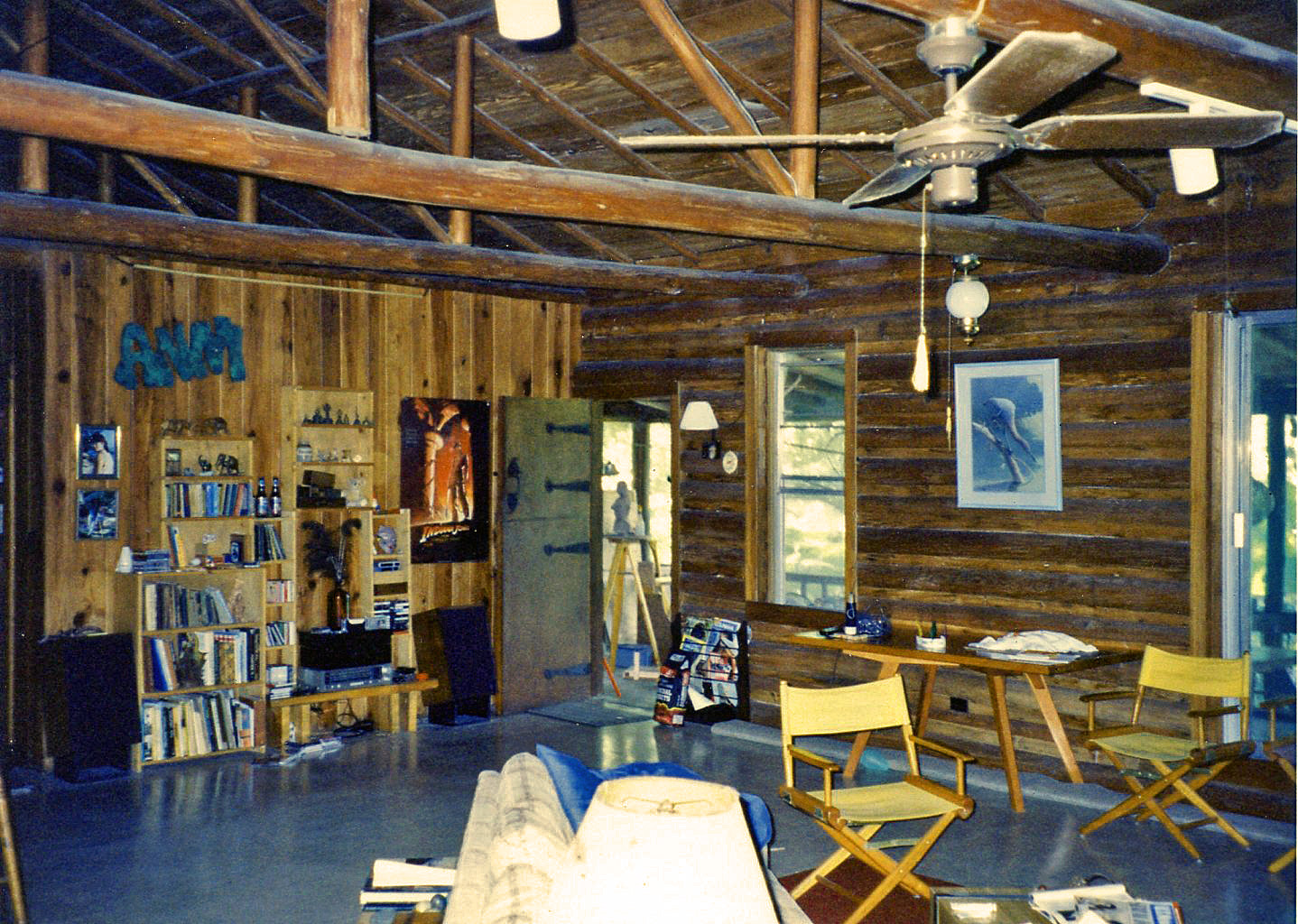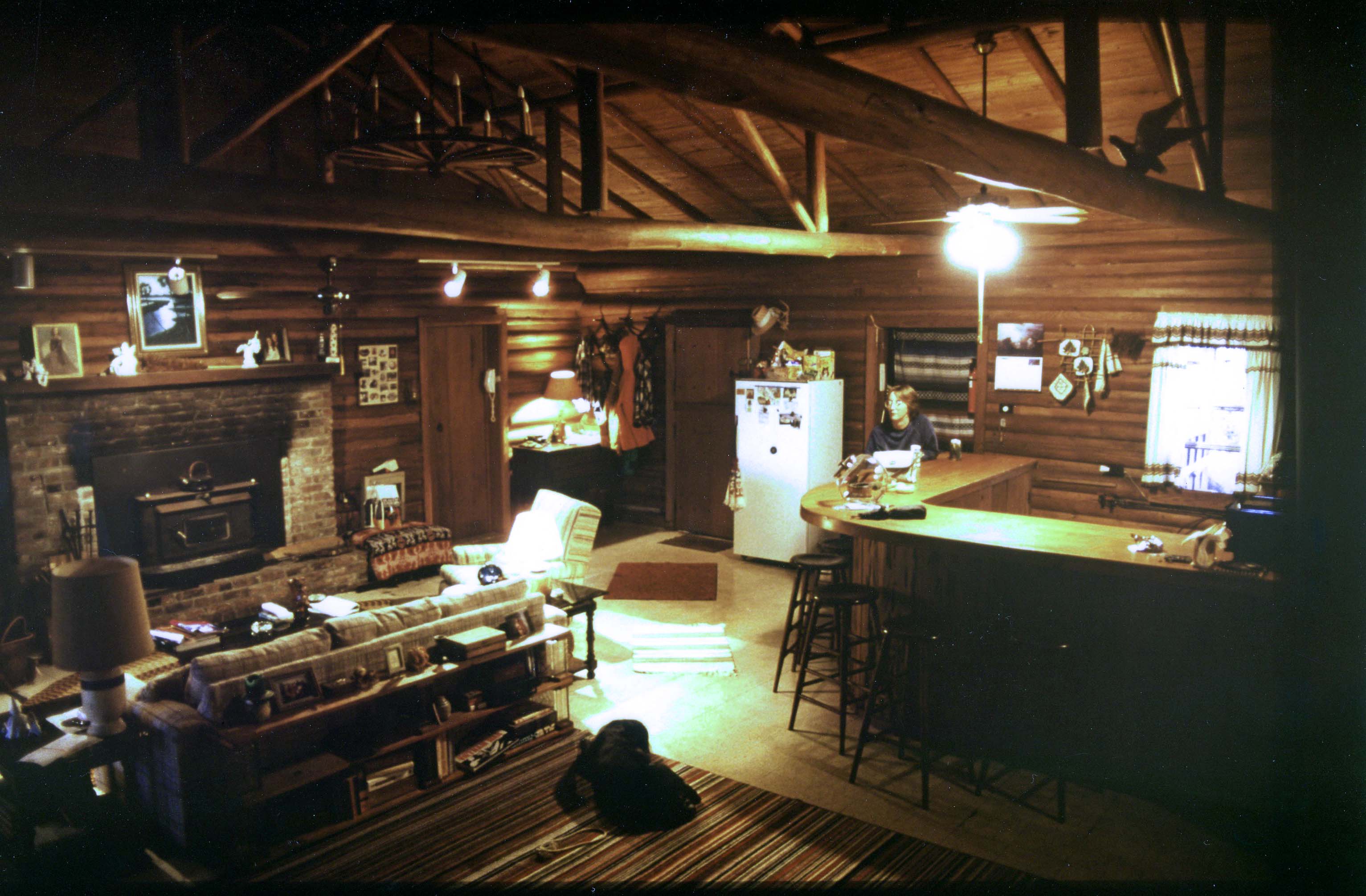 The cabin’s character was also reflected in challenges such as the electrical “panel”, an old fuse box with screw-in glass fuses. Which explained why the small electric heaters mounted on the wall of each bedroom didn’t work. The electrical system probably would not take much more load than the 1950s era rounded, 5 ft high, single-door refrigerator with the iffy seal, the giant old rusted chest freezer and a coffee pot would demand. Some upgrading of the electrical was in store before we could install ceiling fans with light fixtures and a modest track lighting rack in front of the fireplace. And maybe connect up the heaters to the waterbeds we each owned– thank goodness, those heated beds turned out to be lifesavers in the winter!