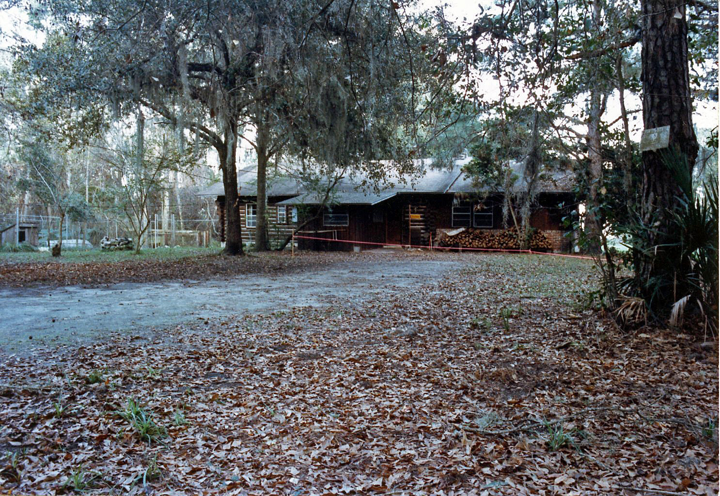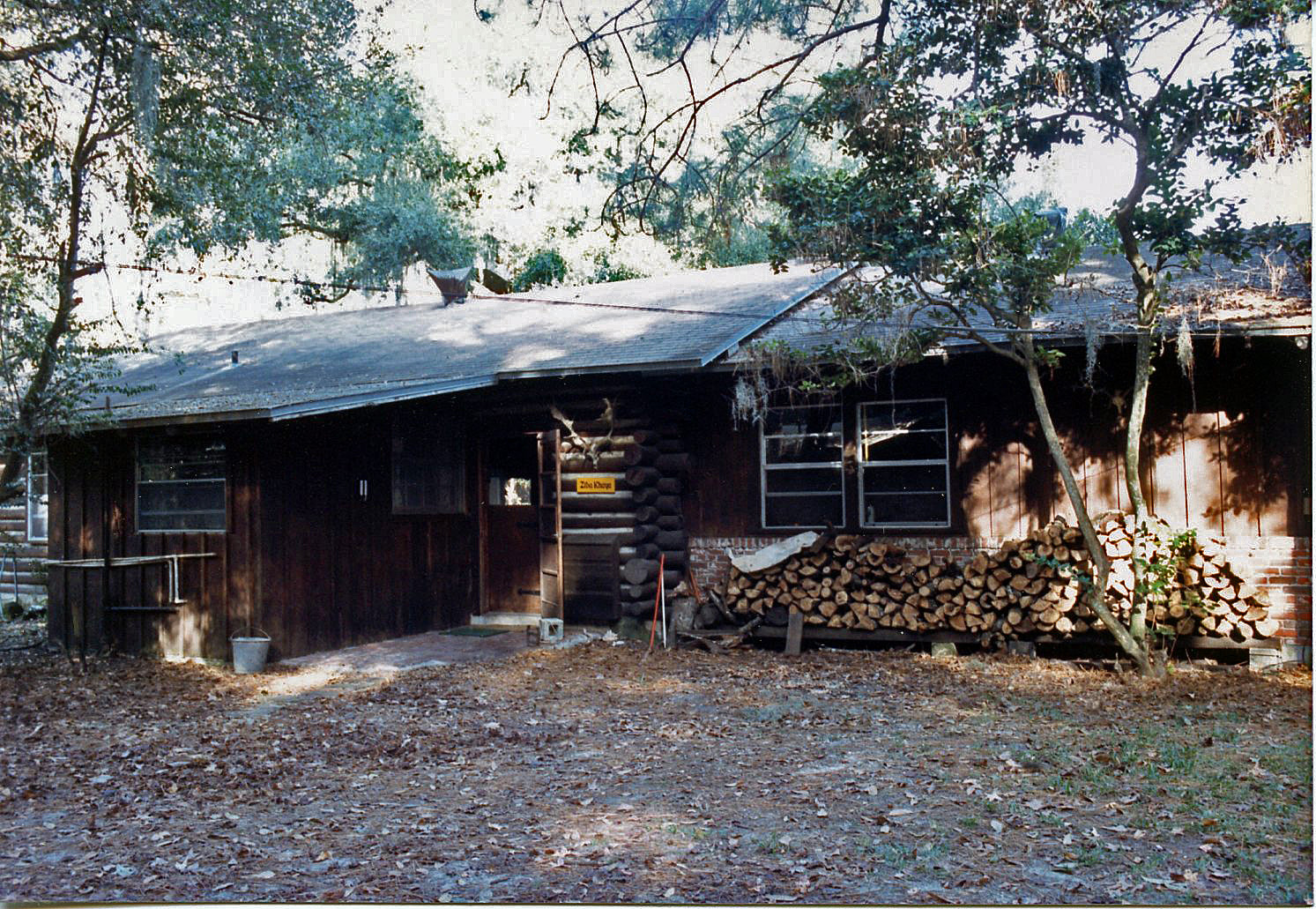 The cabin was situated on several acres of heavily wooded property that were surrounded by a tall hurricane fence topped with barbed wire. Originally built after WWII, the primary log cabin structure was built from old-growth pecky cypress trees logged from the property and milled nearby.